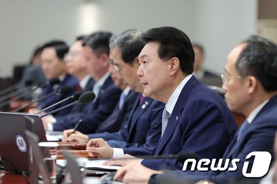 윤석열 대통령이 27일 오전 용산 대통령실에서 열린 2023년도 제26회 국무회의에 참석해 모두 발언하고 있다. (대통령실 제공) 2023.6.27/뉴스1 © News1 안은나 기자