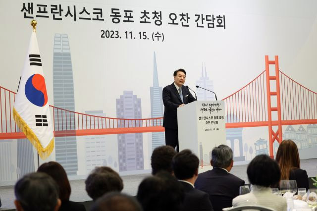 윤 대통령은 아시아태평양경제협력체(APEC) 정상회의 참석차 샌프란시스코를 방문해 현지 동포들과 가진 오찬 간담회에서 마무리 발언을 통해 “세계 각국에 있는 한국 동포 여러분들은 모두 우리 대한민국의 자산”이라며 이같이 말했다.