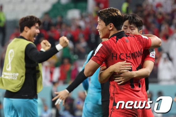 파울루 벤투 감독이 이끄는 한국 축구대표팀은 3일(이하 한국시간) 카타르 알라이얀의 에듀케이션 시티 스타디움에서 열린 포르투갈과의 2022 국제축구연맹(FIFA) 카타르 월드컵 H조 조별리그 최종 3차전에서 후반 46분에 터진 황희찬의 극장골로 2-1 짜릿한 역전승을 거뒀다.