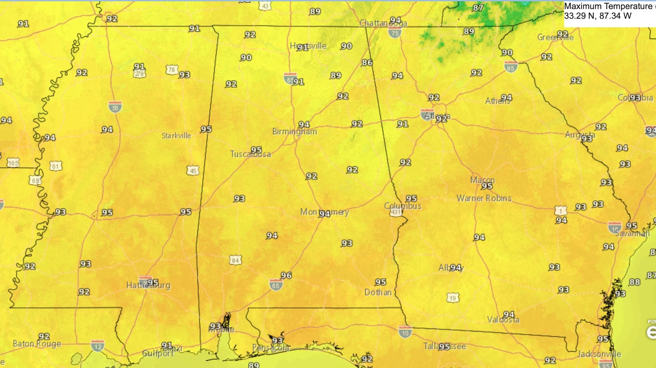금요일에는 앨라배마에 90도 중반에서 후반까지 더 올라갈 수 있다.