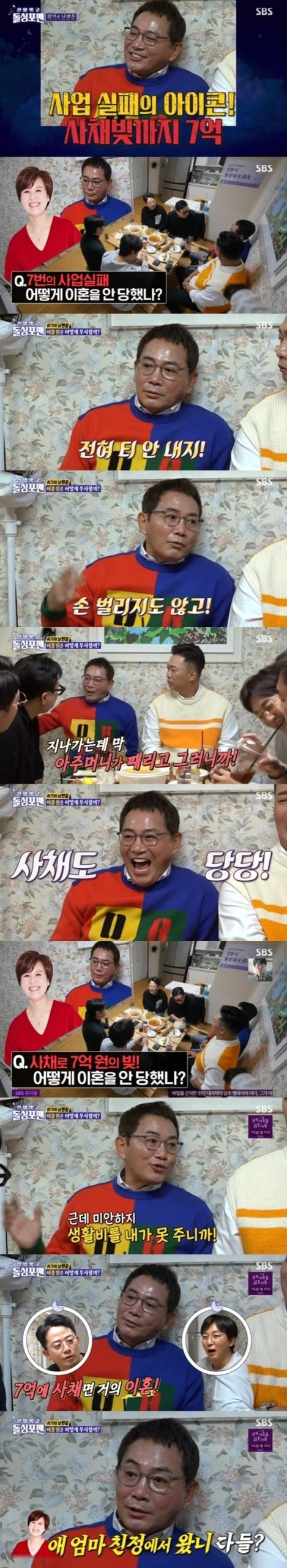 지난 11일 오후에 방송된 SBS 예능 프로그램 ‘신발 벗고 돌싱포맨'(이하 ‘돌싱포맨’)에서는 이봉원이 사업 실패담을 고백했다.