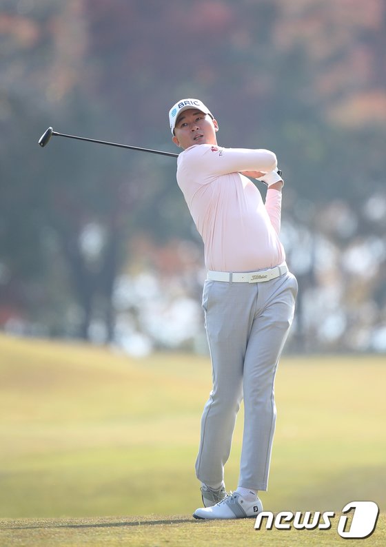 이성호가 5일 경기도 파주 서원밸리CC에서 LG 시그니처 플레이어스 챔피언십 2라운드 7번 홀에서 세컨샷을 하고 있다. (KPGA 제공) 2021.11.5/뉴스1