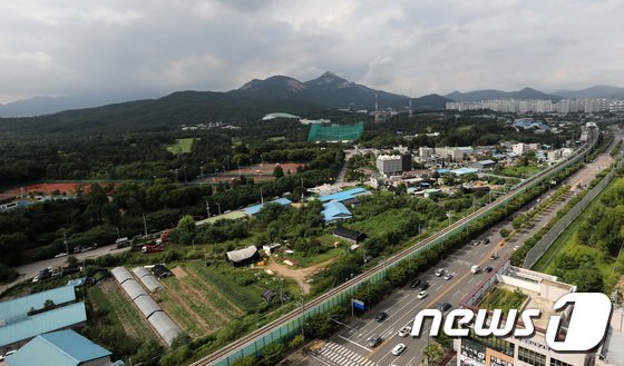 사진은 25일 오후 경기도 구리시 갈매 더샵나인힐스에서 바라본 서울 노원구 태릉골프장의 모습. 2021.8.25/뉴스1 © News1 박세연 기자