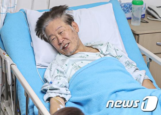 단식 23일째를 맞이한 이재명 더불어민주당 대표가 22일 서울 중랑구 녹색병원에서 진교훈 강서구청장 후보 등과 대화를 나누고 있다. (더불어민주당 제공) 2023.9.23/뉴스1 © News1 송원영 기자