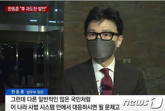 이재명 더불어민주당 대표가 자신에 대한 검찰소환이 “야당탄압으로 정권의 망나니 칼춤을 결코 좌시않겠다”고 한 것에 대해 24일 새벽 한동훈 법무부 장관은 “과도하고 과장된 발언이다. 일반 국민들처럼 사법 시스템안에서 대응하시라”고 주문했다. (YTN 갈무리) © 뉴스1