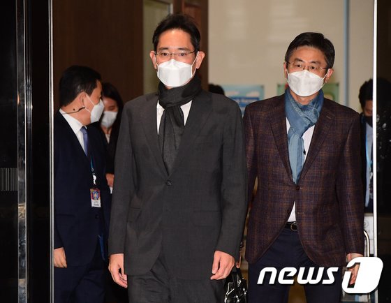 중동 출장 마친 이재용 삼성전자 부회장이 9일 오후 서울 강서구 서울김포비즈니스항공센터를 통해 귀국하고 있다. 2021.12.9/뉴스1 © News1 신웅수 기자