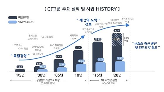 과거 CJ는 1995년 제일제당그룹 출범 후 기존 내수 식품위주의 사업구조에 대한 대대적 재편을 진행했다.