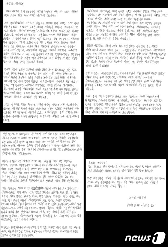 이 전 대표는 23일 밤 페이스북을 통해 “‘열람용'(이라는 글자가) 없는 건 저만 가지고 있겠지요. 전문 그대로 올립니다”면서 ‘존경하는 재판장님께’라고 시작하는 2385자 자필 탄원서 전문을 공개했다.