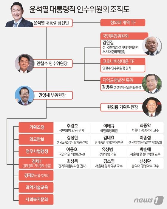 인수위는 윤석열 정부 예비 내각…尹 핵심 인사들 포진