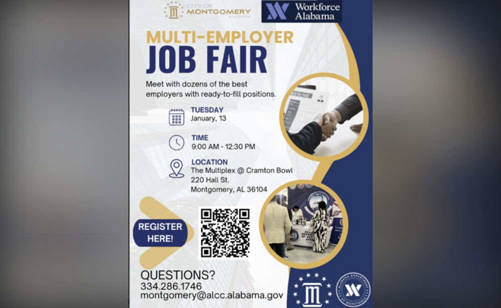 WSFA 12 News 보도에 따르면 City of Montgomery는 Workforce Alabama와 함께 지역 주민을 위한 다중 고용주 채용박람회(Multi-Employer Job Fair)를 개최한다.