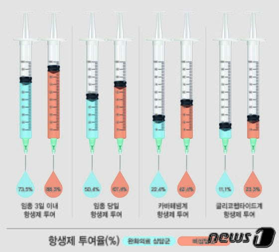 그람 음성(gram-negative)균에 대한 항생제인 ‘카바페넴’ 사용은 △완화의료 상담군 22.4% △비상담군 42.4%, 그람 양성(gram-positive)균에 대한 광범위 항생제인 ‘글리코펩타이드’ 사용은 △완화의료 상담군 11.1% △비상담군 23.3%로, 절반 가량 줄었다.
