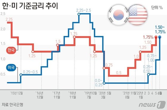 물론 우리나라가 당장 7월 빅스텝을 단행하더라도 2.25%로 한·미 기준금리 역전은 불가피하다.