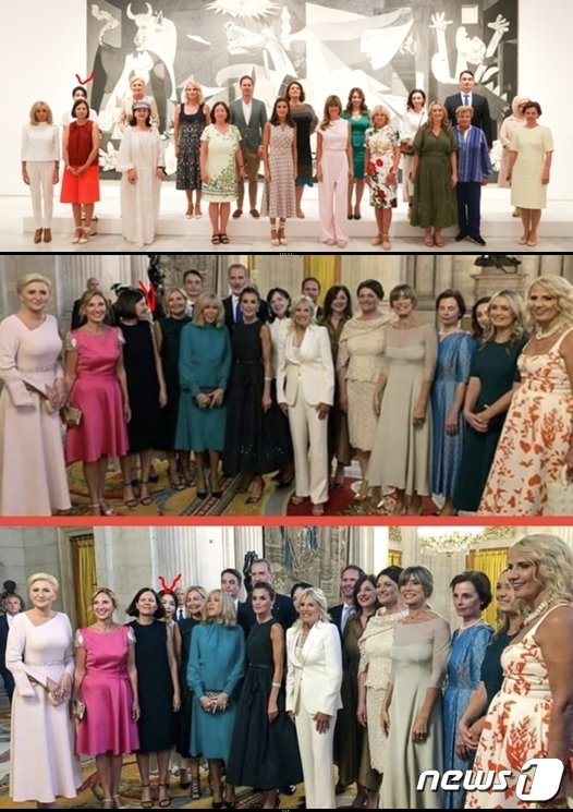 윤석열 대통령 부인 김건희 여사가 나토 정상회의 참석 각국 영부인들과 단체 사진 촬영 때 자리를 잘못 잡았다는 논란에 장경태 더불어민주당 의원이 올라탔다.