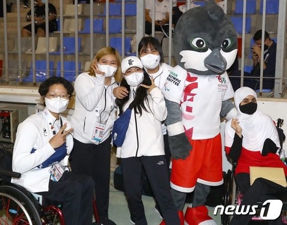2021 바레인 장애인아시아청소년경기대회 폐회식에 참석한 한국 선수단. (대한장애인체육회 제공) © 뉴스1