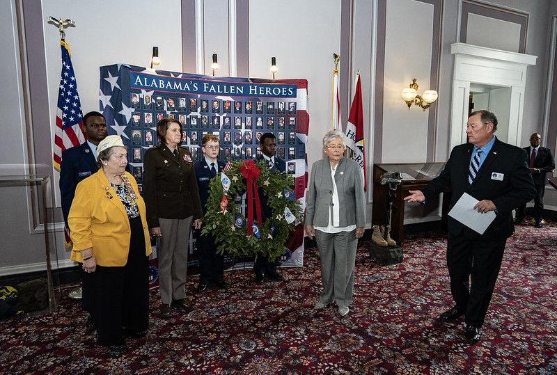 아이비 주지사는 “앨라배마 주민들은 군에 대한 지지를 확고히 하고 있으며, 우리가 화환을 바칠 때 우리는 그들의 희생을 잊지 않을 것이라는 신호를 보내고 있는 것”이라고 말했다.