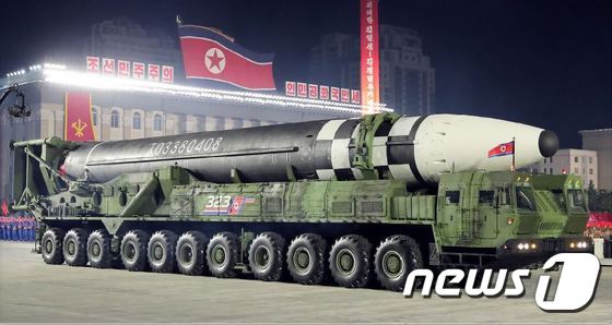 | 북한군이 작년10월 열병식에서 공개한 신형 대륙간탄도미사일(ICBM) (조선 갈무리)© 뉴스1 |
