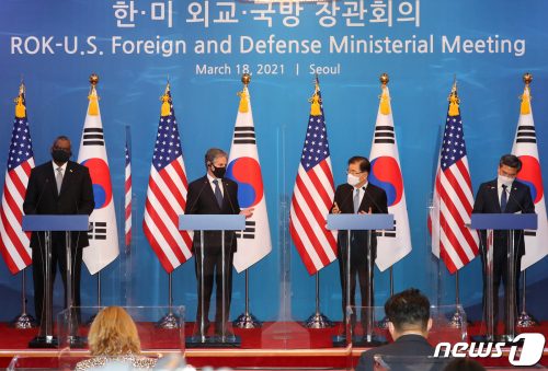 대한민국 정의용 외교장관과 서욱 국방장관은 2021년 3월18일 서울에서 미합중국 안토니 블링컨 국무장관과 로이드 오스틴 국방장관과 함께 한미 외교·국방 장관회의를 개최하였다.