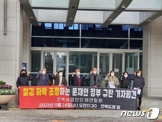 전북 농업인단체연합회는 24일 전북도청 앞에서 기자회견을 열고 “법에 따라 쌀 30만톤 공급과잉 물량에 대한 시장격리를 즉각 발표하라”고 촉구했다.