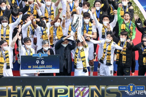 DGB대구은행파크에서 열린 FA컵 결승 2차전에선 K리그2 전남 드래곤즈가 K리그1 대구를 4-3으로 제압하는 이변을 연출했다.