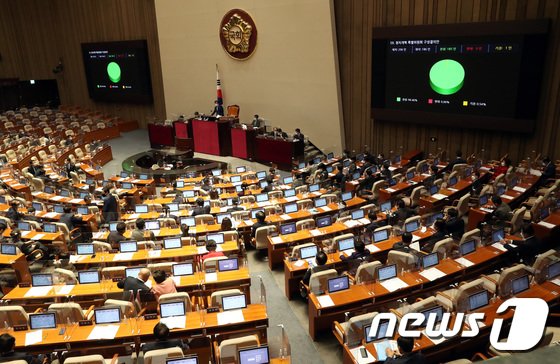 ‘정치개혁 특별위원회'(정개특위) 구성 결의안이 통과되고 있다. 2021.11.11/뉴스1 © News1 구윤성 기자