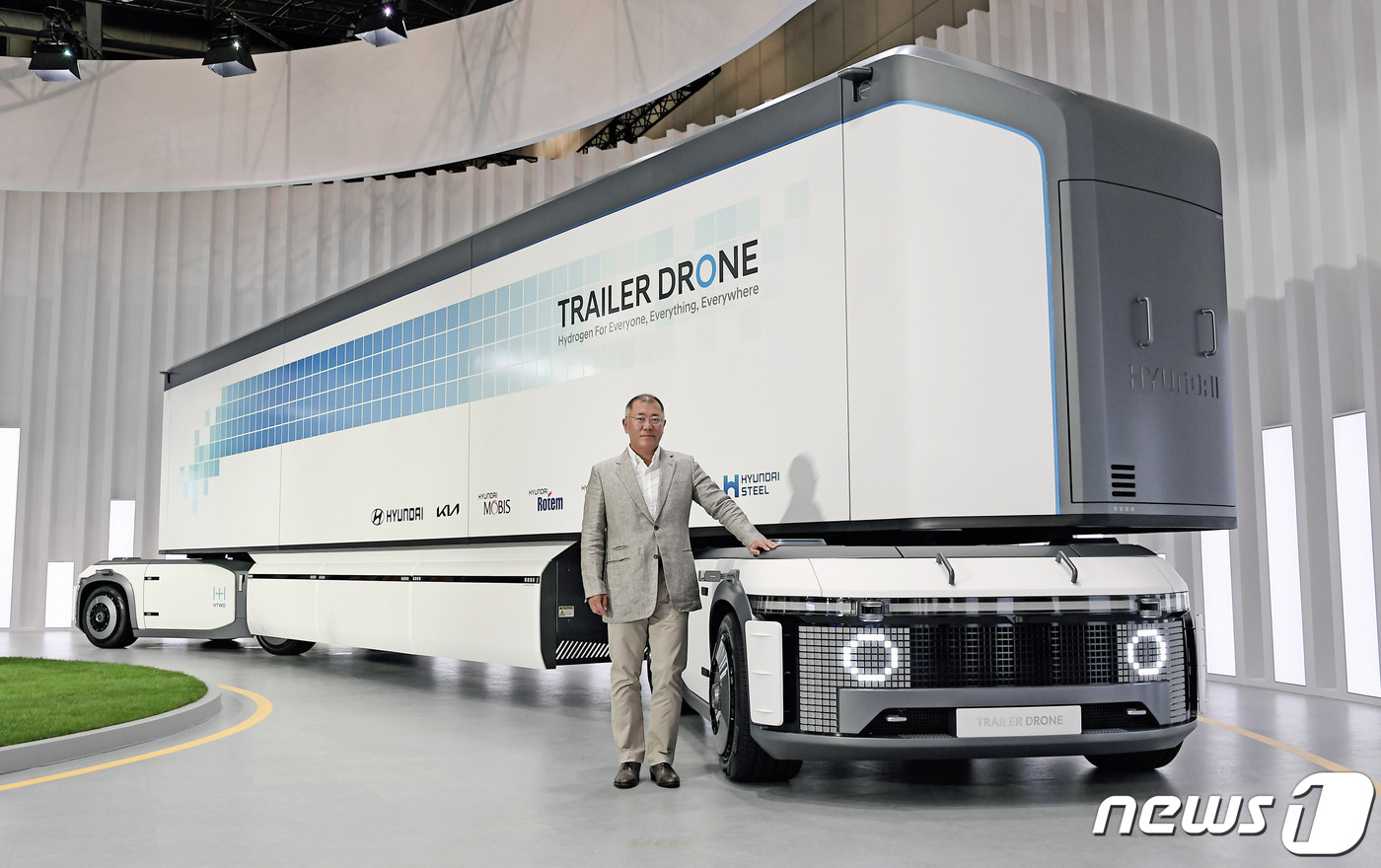 2028년까지 모든 상용차 라인업에 수소연료전지 시스템을 적용하기로 하고, 무인 장거리 운송 시스템 콘셉트 모빌리티 ‘트레일러 드론’과 100kW급, 200kW급 차세대 연료전지시스템 시제품도 선보였다.