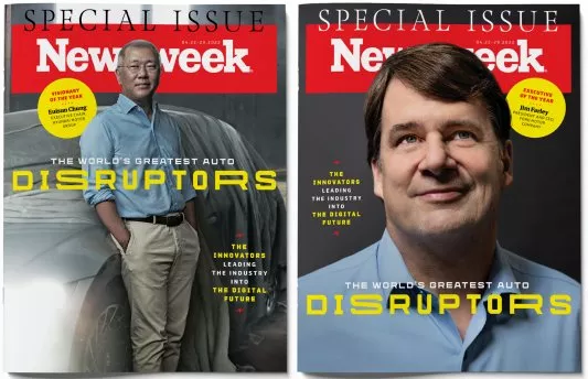 시사주간지 뉴스위크는 12일(화) “2022 세계에서 가장 위대한 자동차 파괴자들”이라는 제목의 특별판을 내고, 정의선 현대자동차그룹 회장을 ‘올해의 선각자(Visonary of the Year)’에, 짐 팔리(Jim Farley) 포드자동차 CEO를 “올해의 경영자”로 선정했다.