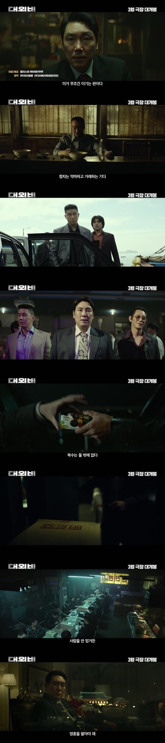 오는 3월1일 개봉을 확정한 ‘대외비’는 1992년 부산, 만년 국회의원 후보 해웅과 정치판의 숨은 실세 순태, 행동파 조폭 필도가 대한민국을 뒤흔들 비밀 문서를 손에 쥐고 판을 뒤집기 위한 치열한 쟁탈전을 벌이는 범죄드라마다.