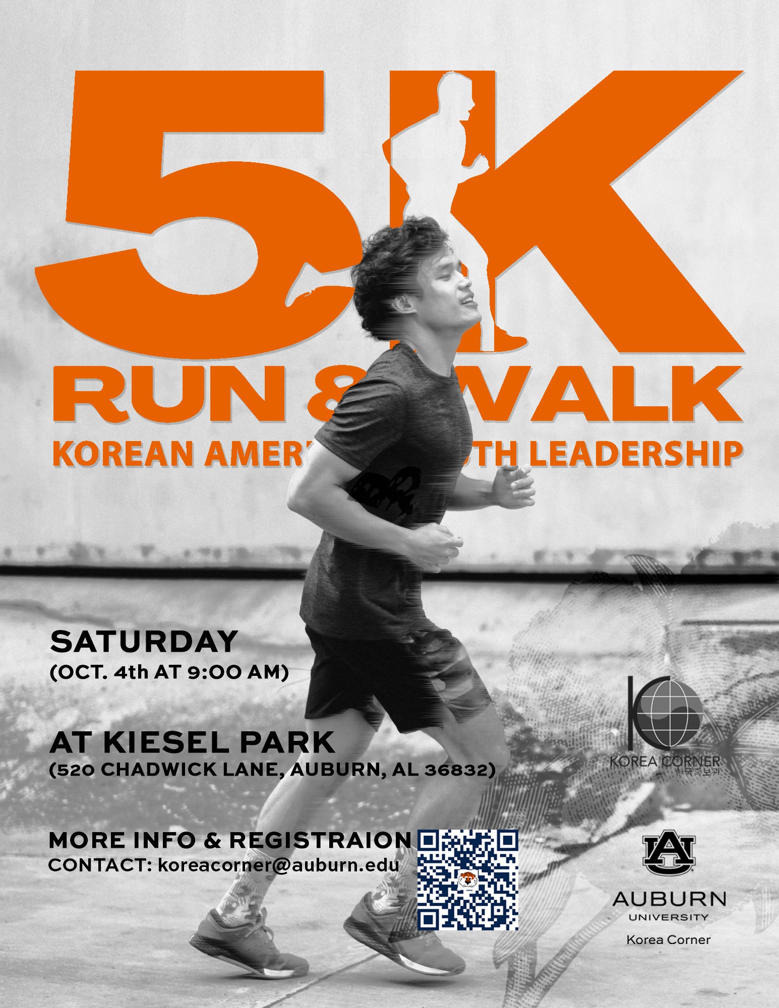 어번대학교 내 코리아코너(Korea Corner)가 주최하는 제2회 기부 마라톤이 오는 10월 4일(토) 오전 9시 어번시 키젤 파크(520 Chadwick Lane, Auburn, AL 36832)에서 열린다. 현장 등록은 오전 8시 30분부터 가능하다.