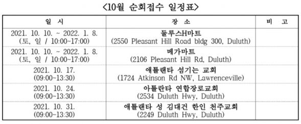 주애틀랜타총영사관은 2022년 1월 8일까지 애를랜타총영사관을 비롯한 전 세계 재외공관에서 일제히 실시된다고 밝혔다.