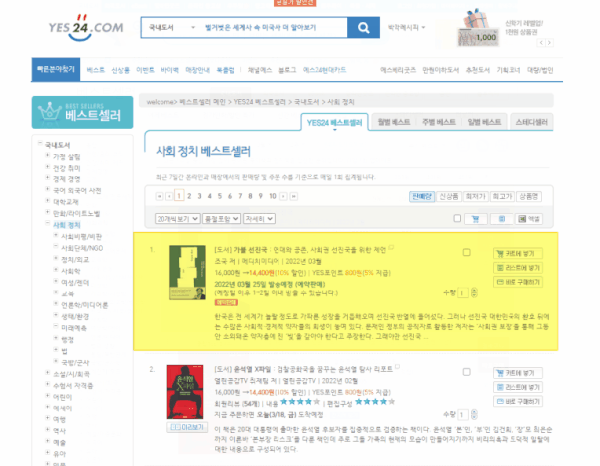 ‘가불 선진국’은 18일 오전 9시30분 현재 △교보문고 주간 종합베스트 2위, 정치/사회 분야 1위 △예스24 국내도서 종합 3위, 사회정치 1위 △알라딘 종합 7위, 사회과학 1위를 기록 중이다.