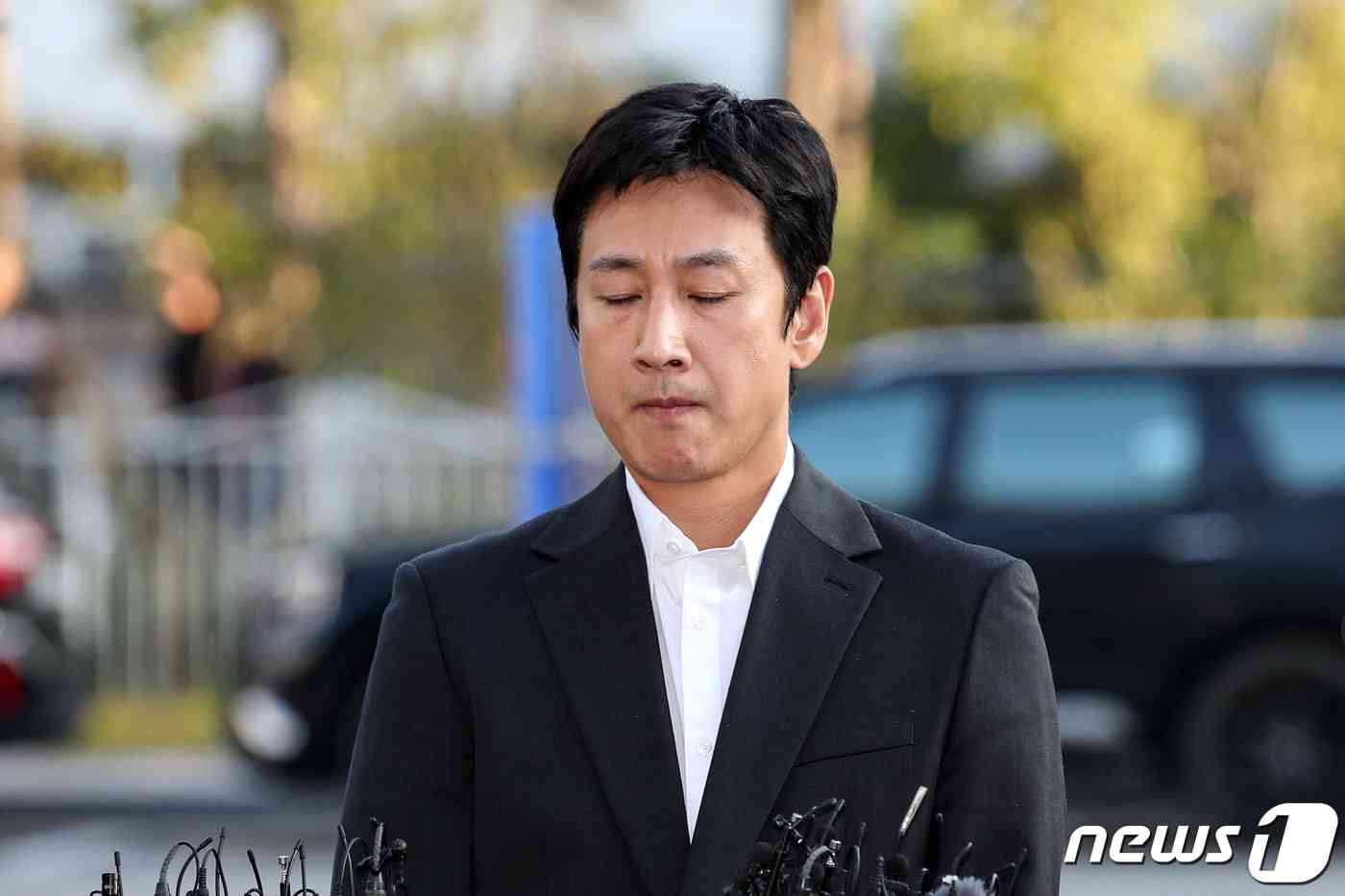 마약 투약 혐의를 받는 배우 이선균씨가 지난 10월 28일 오후 소환조사를 받기 위해 인천 남동구 인천논현경찰서로 들어선 뒤 눈을 감은 채 서며 취재진의 질문을 듣고 있던 모습. 2023.10.28/뉴스1 © News1 이승배 기자
