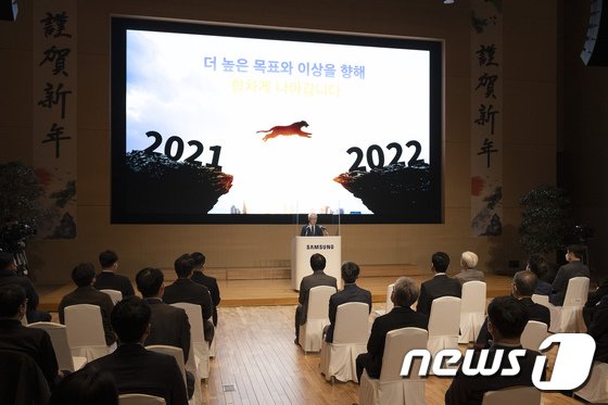 올해 1월 경기도 수원 삼성 디지털 시티에서 열린 '2022년 삼성전자 시무식'. (삼성전자 제공) 2022.1.3/뉴스1