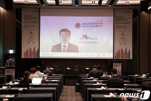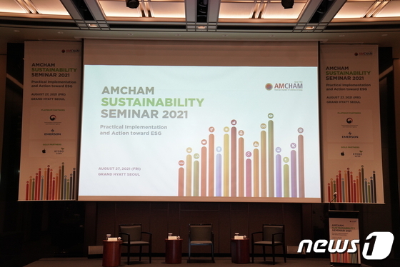주한미국상공회의소(AMCHAM, 암참)가 27일 서울 그랜드 하얏트 호텔에서 ‘2021 암참 지속가능성 세미나’를 개최했다.