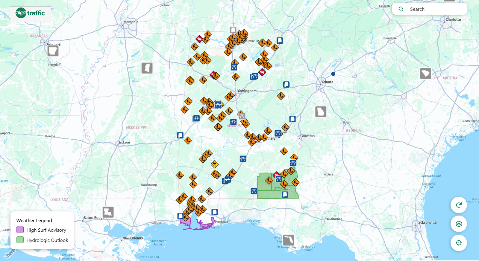 ALGO Traffic은 또한 진행 중인 ALDOT 건설 프로젝트에 대한 정보와 주의 휴게소 및 웰컴 센터 및 해당 편의 시설에 대한 업데이트를 제공한다.
