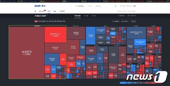 줌인터넷 관계자는 “줌 투자의 핵심 콘텐츠인 국내·해외증시 맵을 통해 투자자는 업종·종목별 시가총액 비중과 주가 등락을 한눈에 직관적으로 파악할 수 있다”고 설명했다.