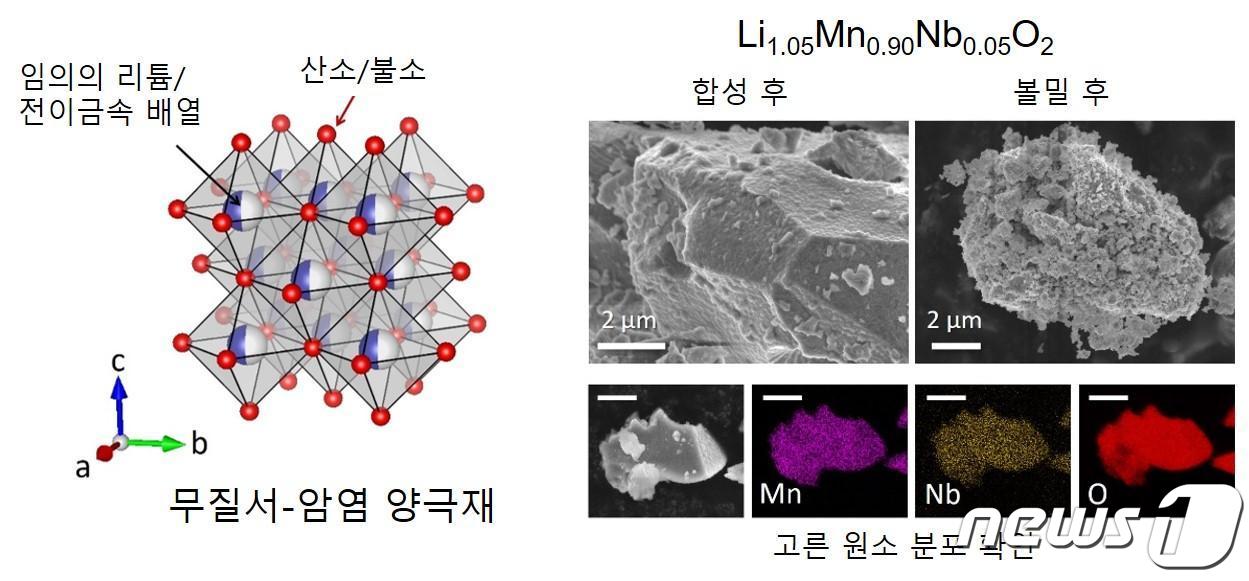 이 때문에 값싸고 매장량이 풍부한 망간, 철 등이 많이 포함된 무질서 암염 소재가 새로운 양극재로 주목받고 있다.