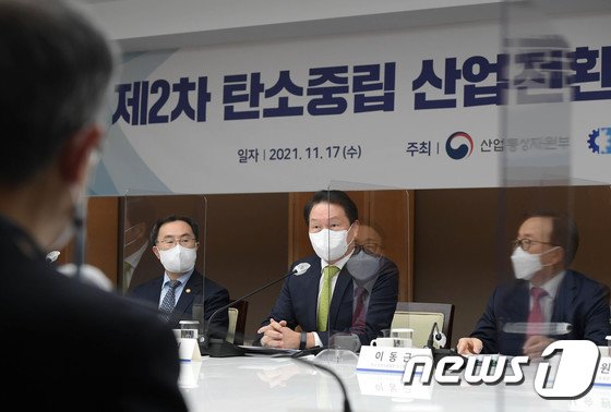 이에 문승욱 산업통상자원부 장관은 “탄소중립에 대한 산업계의 걱정이 많은 것으로 알고 있다”면서 “정부로서도 탄소중립이 우리 경제의 기회요인으로 작용하려면 지금보다 분발하고, 산업계와 소통을 늘려 함께 준비해야 한다”고 답했다.