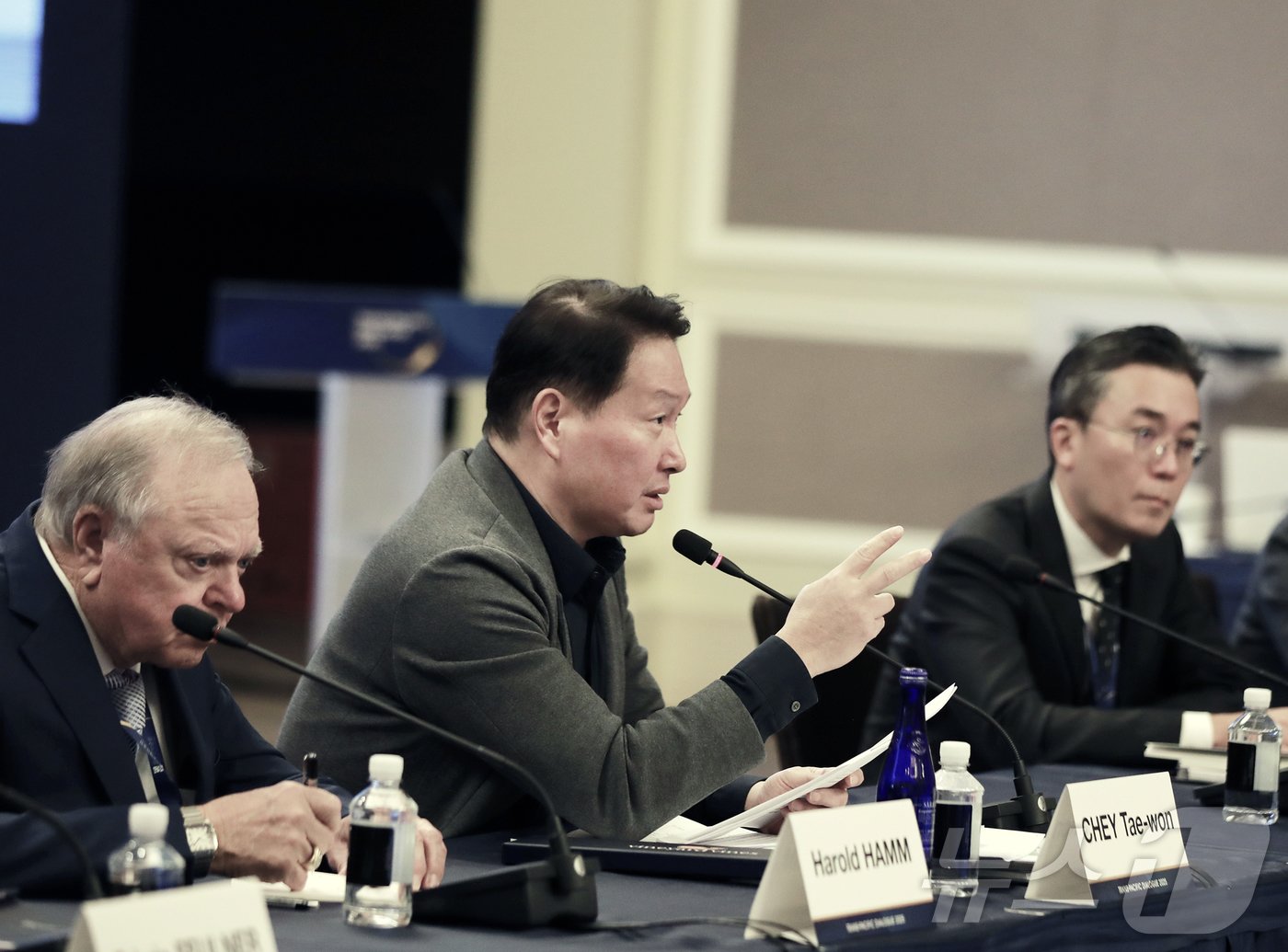 최 회장은 “비즈니스는 필요한 투자는 하는 게 당연한 얘기이긴 한데, 트럼프 행정부 시절에 (딱 정해놓고) 얼마를 하겠다는 식으로 접근하지는 않는다”라고 했다.