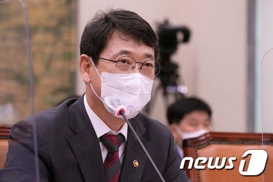 최응천 문화재청장이 25일 서울 여의도 국회에서 열린 문화체육관광위원회 전체회의에서 보그코리아 잡지의 청와대 화보 촬영과 관련된 질의에 답을 하고 있다. (공동취재) 2022.8.25/뉴스1 © News1 허경 기자