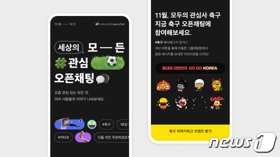 카카오 관계자는 “오픈채팅은 다양한 사람들과 관심사로 이야기를 나눌 수 있는 카카오톡의 핵심 서비스로 월드컵 기간에 전 국민이 온라인으로 모여 더욱 풍성하게 축구 대표팀을 응원할 수 있도록 이벤트를 마련했다”고 밝혔다.