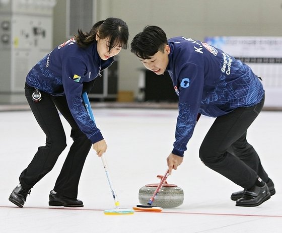 믹스더블 컬링 국가대표 김민지-이기정.(대한컬링연맹 제공) © 뉴스1