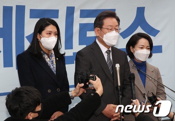 이재명 더불어민주당 대선 후보가 15일 오후 감염병전담병원인 서울 동작구 보라매병원 코로나19 선별진료소를 살펴본 뒤 취재진의 질문에 답하고 있다. 2021.12.15/뉴스1 © News1 국회사진취재단