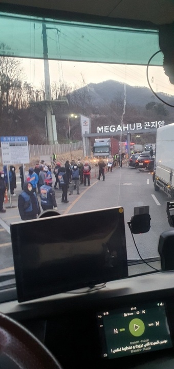 22일 CJ대한통운에 따르면 이날 오전 7시부터 택배노조원 120여명이 CJ대한통운 곤지암메가허브에 입구를 막고 간선 차량 100여대 출차를 막고 있다. 이들은 터미널에 들어가게 해주면 차량을 통행시켜 주겠다고 주장하는 것으로 알려졌다.