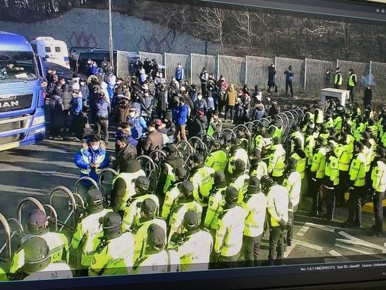 심지어 도급 아르바이트 인력이 탄 통근버스도 몇 시간째 막다가 오전 9시쯤 통과시켰다.