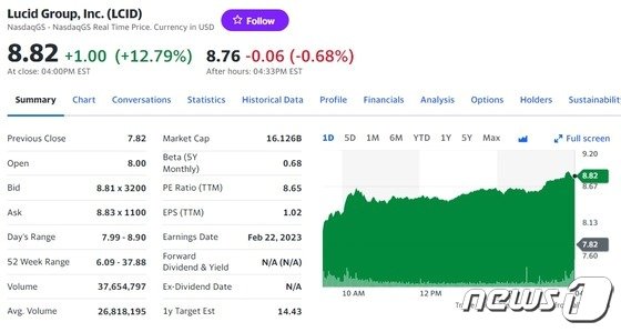 테슬라 이외의 다른 전기차도 일제히 폭등했다. 루시드는 12.79% 폭등한 8.82 달러를, 리비안은 11.52% 폭등한 18.10 달러를, 니콜라는 9.52% 폭등한 2.76 달러를 각각 기록했다.