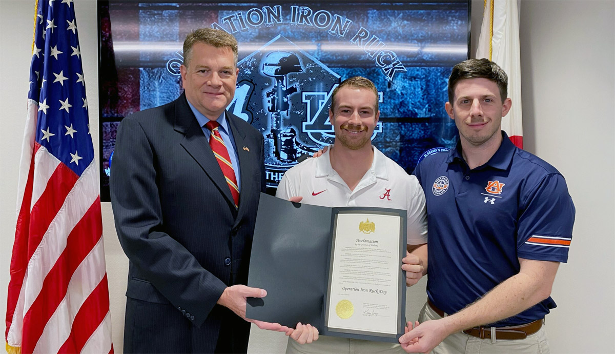 케이 아이비(Kay Ivey) 주지사는 오늘(22일) 앨라배마 대학과 어번 대학의 퇴역군인 학생회원들이 퇴역군인의 자살에 대해 경각심을 일깨우기 위해 노력하는 아이언럭 작전(OIR: Operation Iron Ruck)을 지원하겠다고 밝혔다.