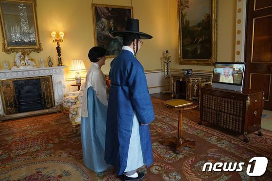 지난 7월 부임한 김 대사는 이날 부인과 함께 한복을 차려입은 채 영국 왕실에서 보내준 마차를 타고 런던 시내 버킹엄궁으로 이동했다. 그곳에서 김 대사는 화상으로 여왕에게 신임장을 제정했다.