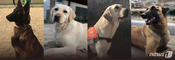 토리와 토백이, 티나, 해태는 모두 중앙119구조본부 소속 특수 인명구조견이다.
