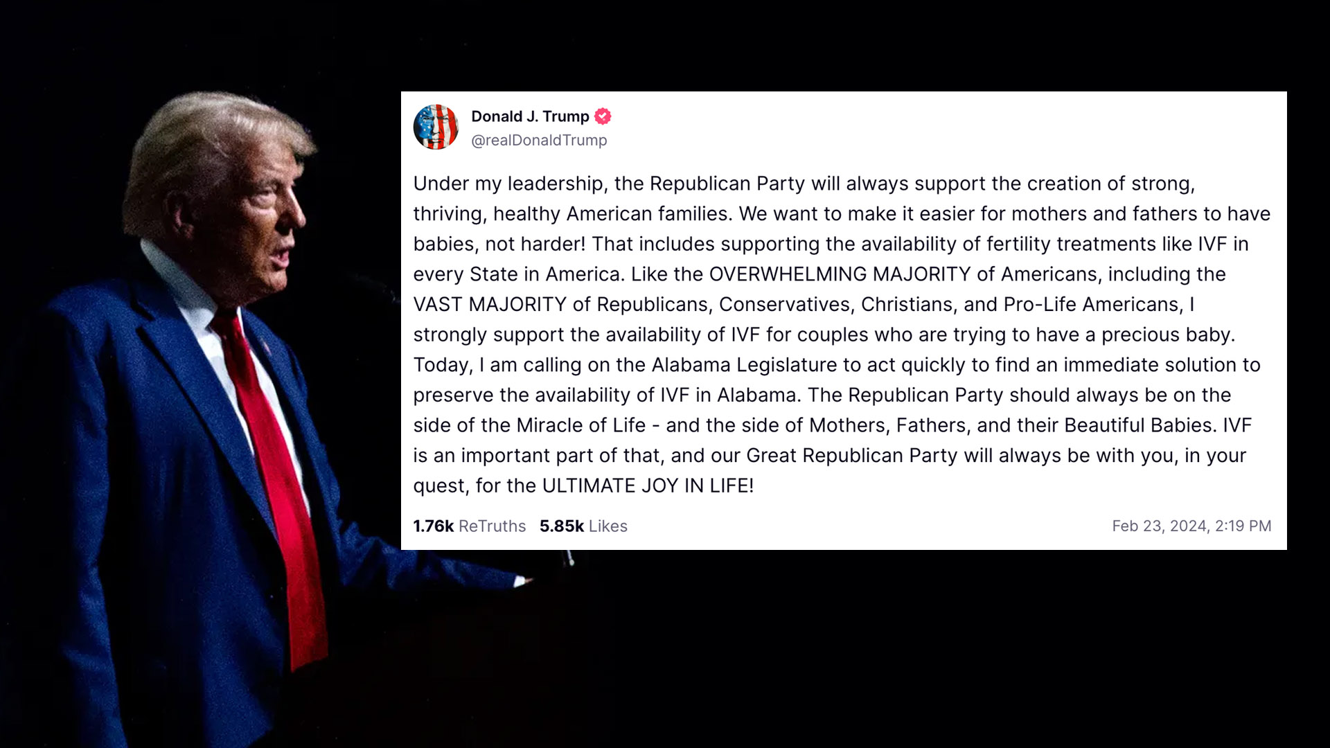 트럼프는 이날 연설에서 “오늘 중요한 성명을 발표한다”며 “트럼프 행정부 하에서 여러분의 정부가 여성의 TVF 치료 및 수정과 관련된 모든 비용을 지불하거나 여러분의 보험회사가 지불하도록 의무화할 것”이라고 말했다.
