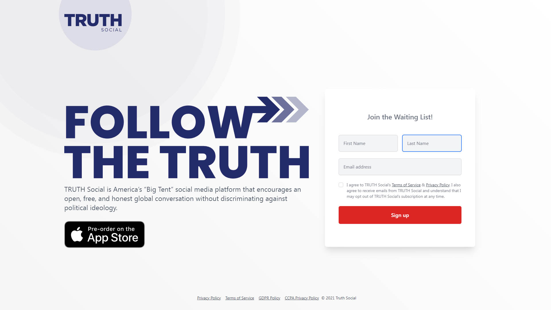 TRUTH Social은 이제 애플 앱 스토어에서 사전 주문을 할 수 있다. TRUTH Social은 2021년 11월에 초청한 손님들을 대상으로 베타 론칭을 시작할 계획이다.